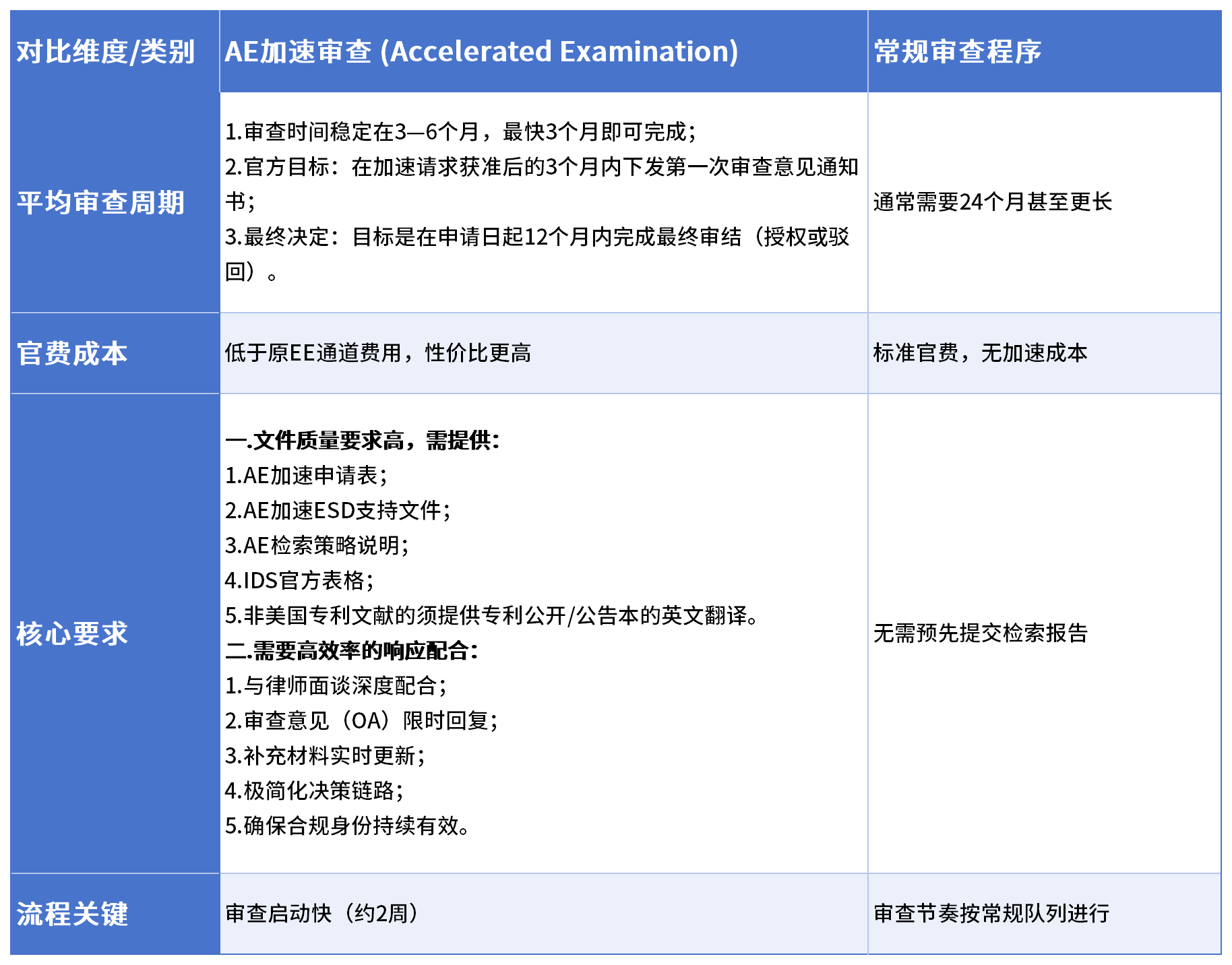 AE通道成为当前唯一常规加速选择:在此背景下,AE(Accelerated Examination)通道的重要性愈发凸显,成为企业快速获得美国外观专利保护的关键路径。